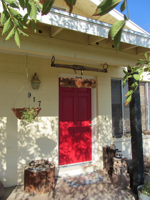 | While we were out her family surprised. Painted her front door. Red, of Course . |